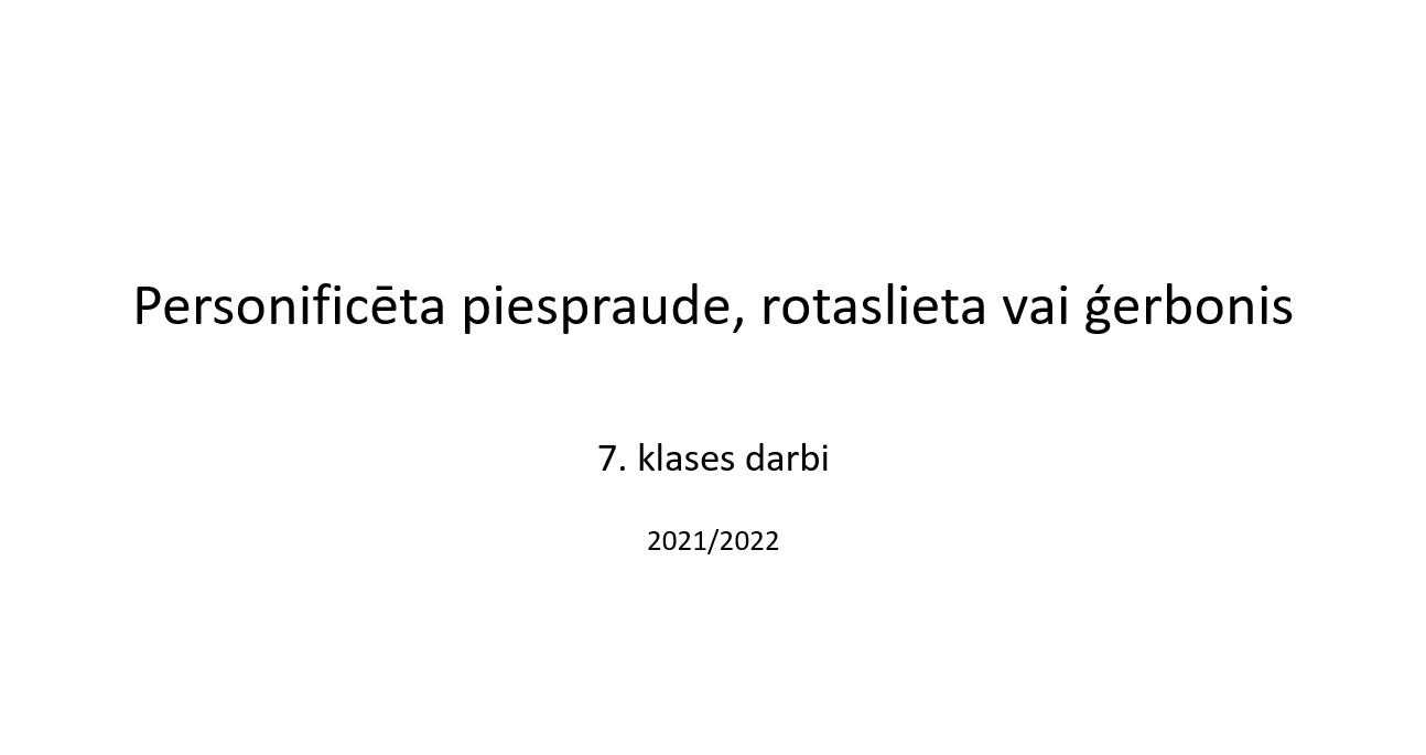 Uzsākot mācības ģimnāzijā, septīto klašu skolēnu pirmais uzdevums vizuālajā mākslā – uzzīmēt personificētu piespraudi, rotaslietu vai ģerboni. Kā skolēni ar darbu tikuši galā, var aplūkot labāko darbu galerijā.
