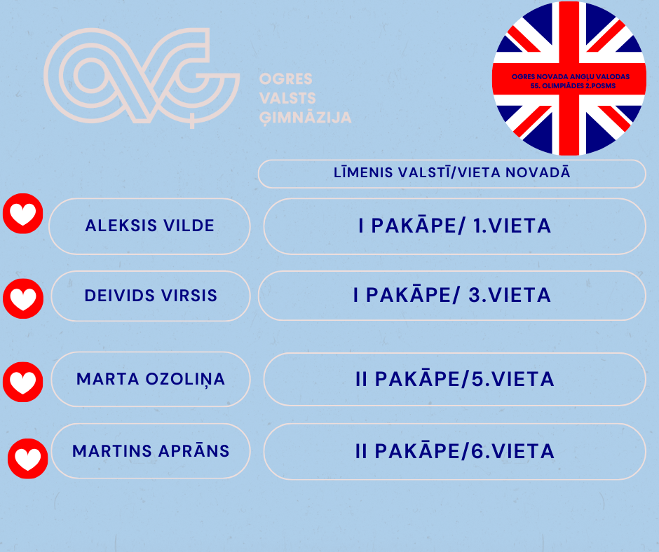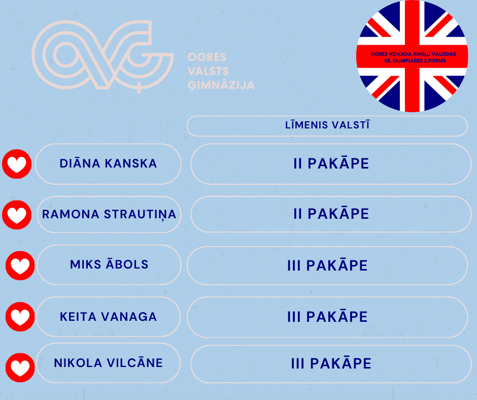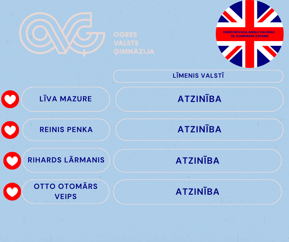 Atzinība- Kārlis Drone (12.h), Rūta Bražone (10.h), Markuss Jākobsons (11.i)